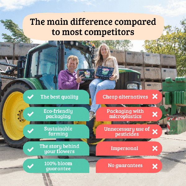 Duurzaam Verpakt: De tulpenbollen worden met zorg verpakt om hun kwaliteit te behouden en om verspilling te minimaliseren.