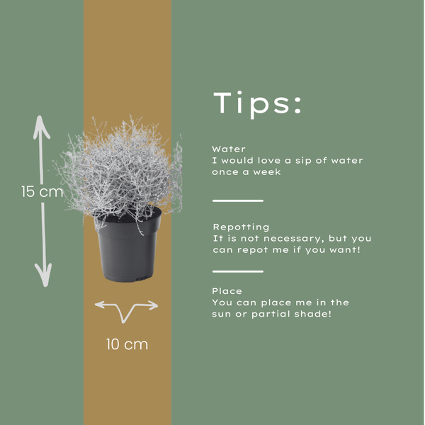 Wil je een stijlvolle, onderhoudsarme plant met een unieke zilvergrijze kleur? Dan is het Zilverstruikje (Calocephalus brownii) precies wat je zoekt. Perfect om jaarrond sfeer te brengen in je tuin, balkon of terras!