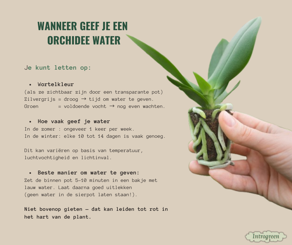 Niet bovenop gieten — dat kan leiden tot rot in het hart van de plant.
