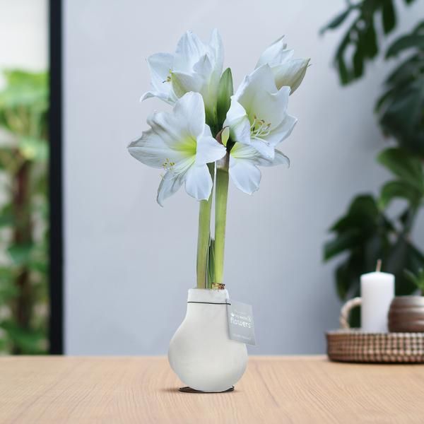 No Water Flowers® (wax amaryllis) | Velvet Touchz® - White + White flower